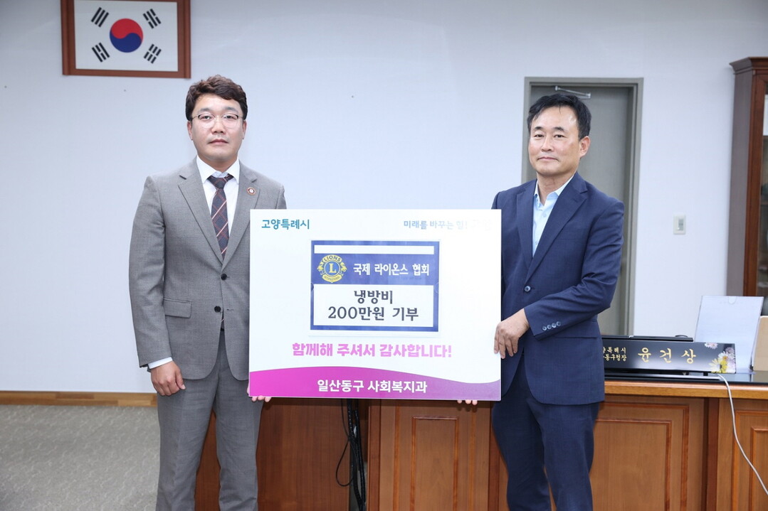 [부자동네타임즈 = 김인수 기자] 고양특례시 일산동구는 지난 7일 ‘고양 난다(복지 나눔 1촌 맺기)’사업의 일환으로 국제라이온스협회 354-H지구 제5지역(부총재 황갑선)으로부터 취약계층을 위한 냉방비 200만 원을 전달받았다고 밝혔다.