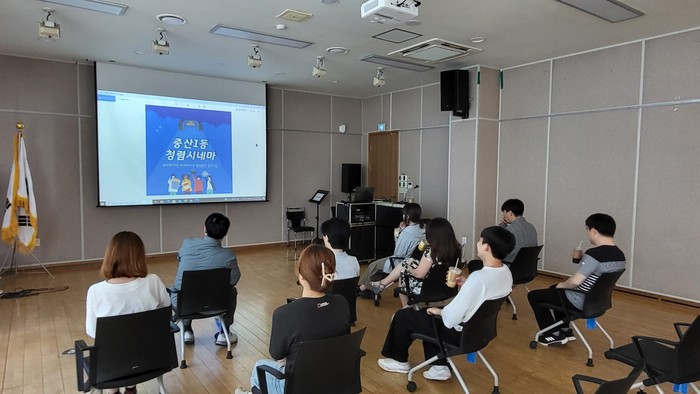 이번 ‘중산1동 청렴시네마’에서는 국민권익위원회 청렴콘텐츠 공모전 수상작인 단편영화를 상영했고, 직원들은 영화를 감상하고 후기를 함께 나누며 평소 청렴에 대한 생각과 관련 경험을 공유하는 시간을 가졌다.
