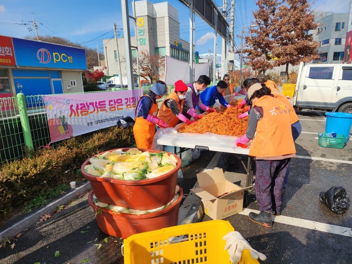 [부자동네타임즈 김인수기자] 고양특례시 대덕동행정복지센터(동장 박성완)은 14~15일 사랑 기득 김장담그기 행사를 대덕동복지관 주차장에서 지역사회보장협의체 주관 하에 진행하였다.