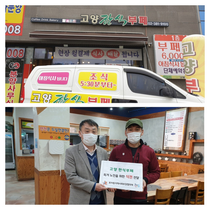 [부자동네타임즈 김인수기자] 고양시 효자동행정복지센터(동장 조재현)는 지난 24일 관내 위치한 고양한식부페(대표 이화동)가 식사 해결이 어려운 독거노인을 위해 효자동지역사회보장협의체에 식권 60매를 전달했다고 밝혔다.