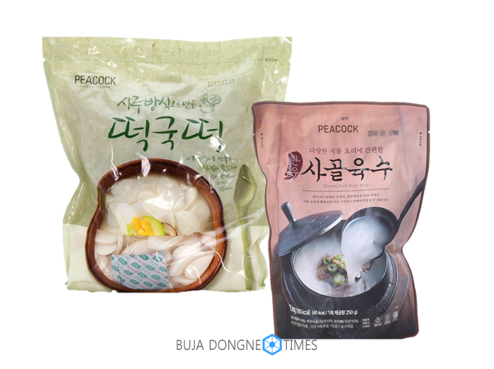 시루에 쪄 쫄깃한 ‘피코크 시루떡국떡 1kg, 1.5kg’은 각 3,180원, 3,980원에 준비했다. 국내산 현미를 넣어 찰진 식감을 낸 ‘피코크 찰진 우리쌀떡국떡 1kg’은 5,980원, ‘피코크 이천쌀떡국떡 700g’은 5,780원에 판매한다. ‘피코크 한우사골육수 1kg’은 5,980원, ‘피코크 양지육수 500g, 500g*2입’은 각 3,480원, 5,980원에 만날 수 있다.