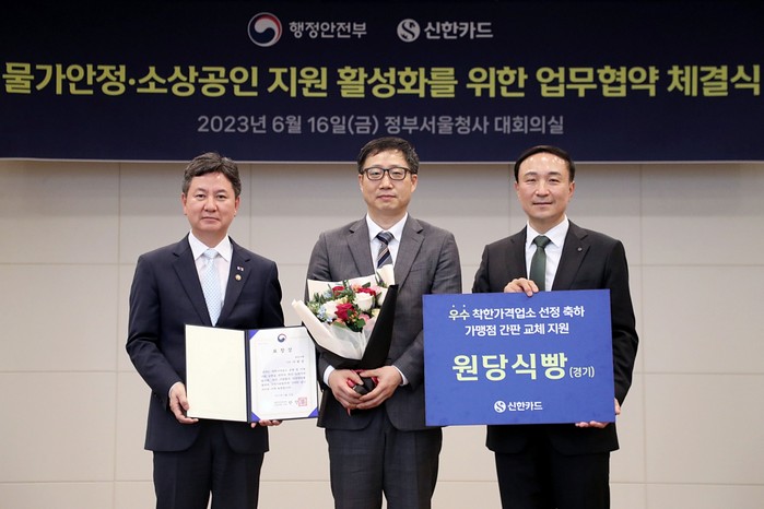 [부자동네타임즈 김인수기자] 지난 6월 16일 정부서울청사 대회의실에서 열린 행정안전부와 신한카드의 ‘물가안정·소상공인 지원 활성화를 위한 업무협약 체결식’에서 고양시 업체인 원당식빵이 우수 착한가격업소로 선정되어 행정안전부 표창을 받았다.