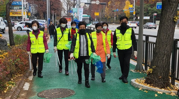 이번 활동은 정기적으로 실시하는 쓰레기 줍기 등 환경정화 뿐 아니라 계속 쌓이는 낙엽수거도 함께 했다. 호우 시 배수를 원활하게 하기 위해 관내 빗물받이 중심으로 쌓여있는 쓰레기와 낙엽을 제거하는 활동으로 손을 보탠 것이다.