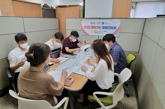 찾아가는 청렴간담회는 관행적 부패 근절과 청렴문화 확산을 위해 감사관실이 각 부서를 방문하여 고양시 청렴도를 공유하고 청렴도 향상 방안에 대한 의견을 청취하기 위해 실시되는 2022년도 청렴 특화시책이다.