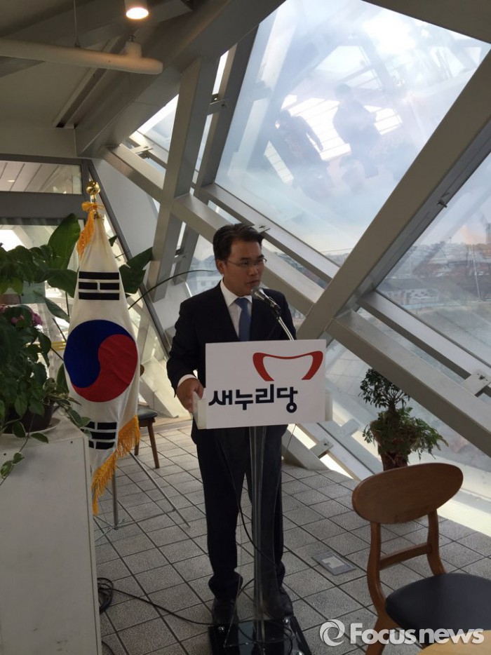 △ 이재만 전 대구 동구청장이 15일 '아양기찻길 데크'를 찾아 20대 총 선 출마를 선언하고 있다. <사진제공=포커스뉴스> |