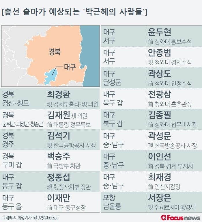박 대통령은 지난 10일 국무회의에서 "진실한 사람을 선택해달라"며 총선 심판론을 제기했다. 이와 동시에 '박근혜의 사람들'이 TK 지역에 출마 러시를 보이는 상황이다.