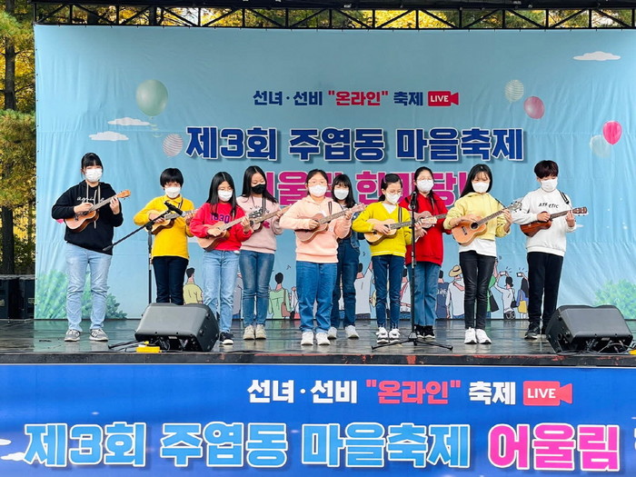 [부자동네타임즈 김인수기자] 지난 10월 30일(토) 오후2시 주엽1·2동 통합 온라인 마을축제가 강선공원에서 성황리에 개최됐다. 이번 축제는 코로나 19로 지친 지역 주민들의 일상 회복을 기원하고 소통과 화합을 위한 자리로 마련됐다.