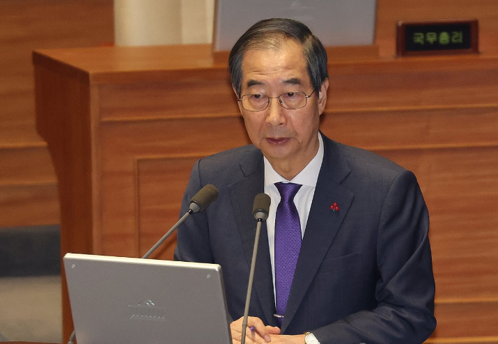 한덕수 국무총리가 13일 오후 국회 본회의에서 열린 '윤석열 대통령 위헌적 비상계엄 선포 내란행위 관련 긴급현안질문'에서 답변하고 있다. 2024.12.13