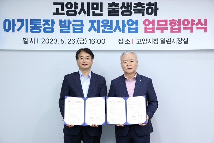[부자동네타임즈 김인수기자] 고양특례시(시장 이동환)는 고양동부새마을금고(이사장 김재수)와 지난 26일 ‘고양시민 출생축하 아기통장 발급 지원 사업’을 위한 업무협약을 체결했다.
