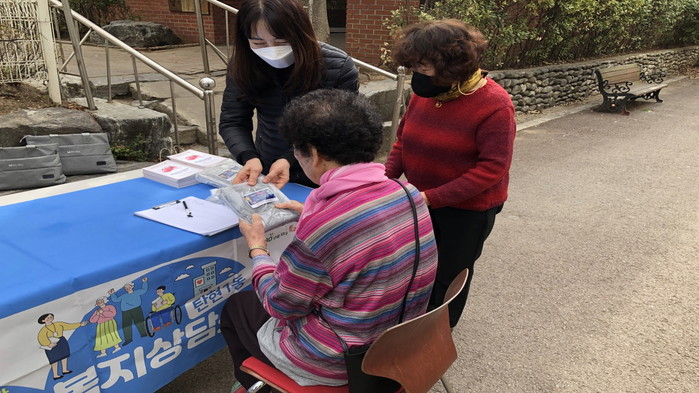 이날 찾아가는 복지상담소에서는 일산서구보건소 치매안심센터와 협업해 방문 어르신을 대상으로 치매검진과 상담을 진행했다. 또한 취약계층에 대한 신규 발굴을 위해 홍보물품을 배부하며 복지위기에 처해있는 가구 발견 시 찾아가는복지팀으로 안내해줄 것을 적극 홍보했다.