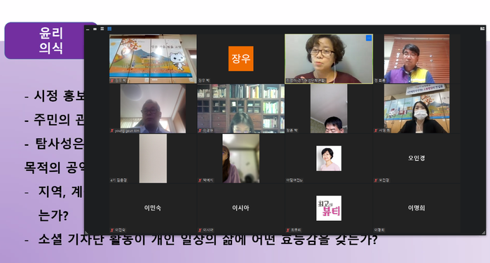 지난 4일에는 ‘성인지 아카데미’라는 주제로 경기여성단체연합 이정아 상임대표가 교육을 진행했다. 이정아 대표와 함께 기자단 활동에 있어 기자윤리를 지키고, 지속가능한 도시공동체를 구성하는 방법에 대해 논의하는 자리를 가졌다.