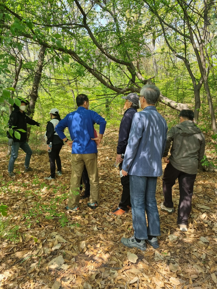 [사진설명] 시 관계자와 지역 주민이 정발산 미개설 구간을 탐방하고 있다.