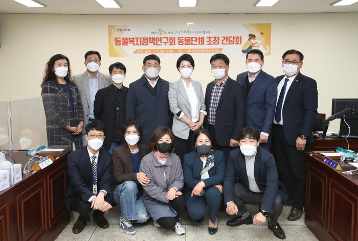 [부자동네타임즈 김인수기자] 고양시의회 의원 연구단체인 ‘동물복지정책연구회(회장 손동숙)’가 4월 12일 고양시의회 환경경제위원회 회의실에서 민간동물보호단체 초청 간담회를 개최했다.