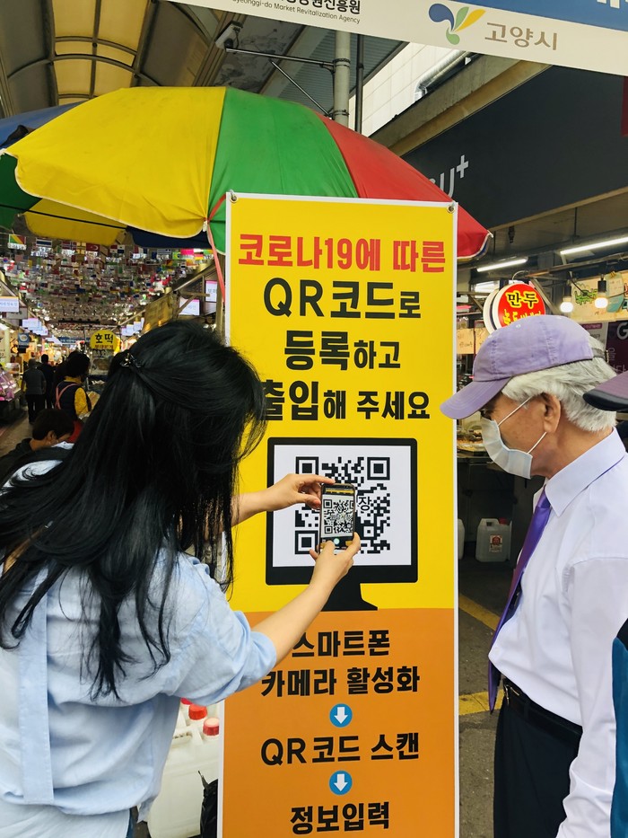 시는 QR코드 시범 운영 후 일산·능곡·원당 등 전통시장 3개소 및 일산서문 상점가 출입구 등 총 18곳을 선정해 QR코드 배너 설치를 완료했다. 동시에 알바 6000으로 선정된 인원 36명을 배치해 출입자 관리를 점차 강화해 나갈 계획이다.