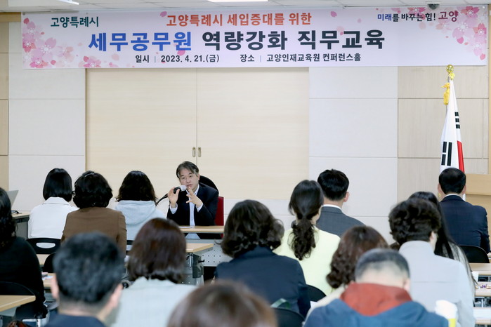 [부자동네타임즈 김인수기자] 고양특례시(시장 이동환)는 지난 21일(금) 지방세 담당공무원 50명이 참석한 가운데 고양인재교육원에서 고양시 세입증대를 위한 세무공무원 역량강화 직무교육을 실시했다.