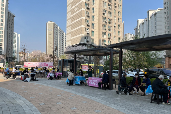 이날 센터는 거동이 불편해 치매안심센터 내방이 어려운 주민들에게 치매선별검사, 기초건강측정, 복지 상담을 실시했다.