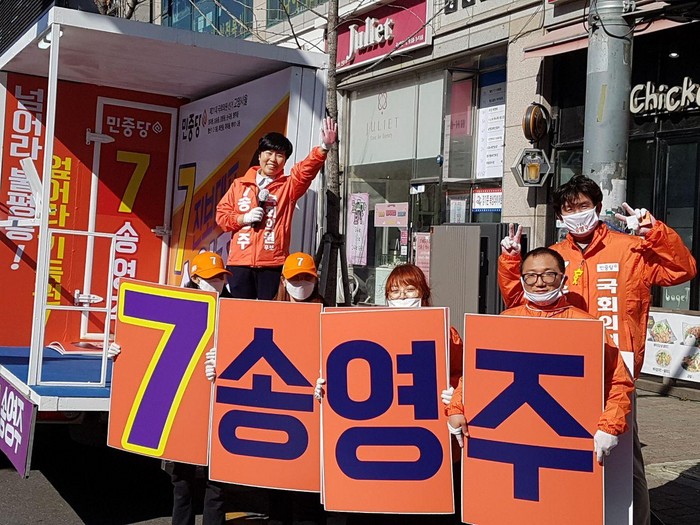 사회적 거리두기에도 불구하고 맑은 날씨 충장공원, 지도공원을 찾은 시민들을 만난 송영주 후보는 “코로나로 식목행사는 취소되었지만 기후위기를 맞은 지구를 지키기 위해서는 탄소배출을 줄이고, 숲을 확대하는 것이 중요하다”고 말했다.