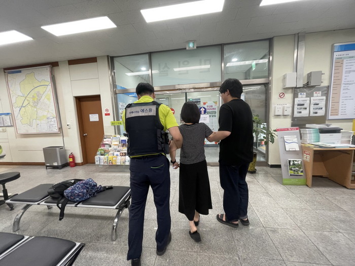 이번 훈련은 민원인의 폭언, 폭행 발생 상황을 가정하고 ▲민원인 진정 및 제지 ▲법적 대응 고지 후 촬영 ▲비상벨 작동 ▲피해 공무원 보호 격리 및 방문 민원인 대피 ▲보안요원 출동 후 가해 민원인 인계 순으로 진행됐다.