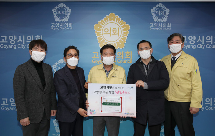 [부자동네타임즈 김인수기자] 고양시의회(의장 이길용)는 1월 28일 시의회 청사에서 ㈜그레이스브리지와이드(대표 윤일호)와 고양시 종합사회복지관과 함께 마스크 전달식을 가졌다.