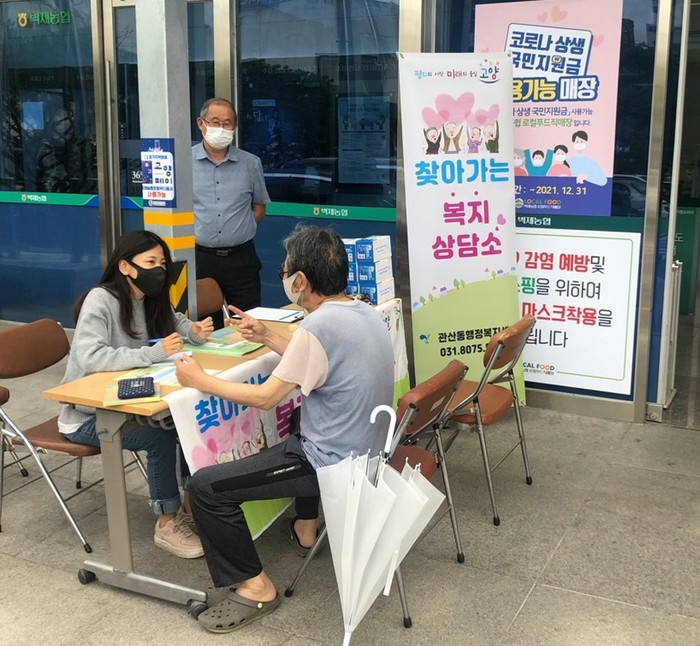 [부자동네타임즈 김인수기자] 고양시 덕양구 관산동행정복지센터(동장 서병하)는 "9월 28일 관산동 벽제농협 로컬푸드 직매장 입구에서 ‘찾아가는 복지상담소’와 ‘복지사각지대 발굴 캠페인’을 실시했다."고 밝혔다.