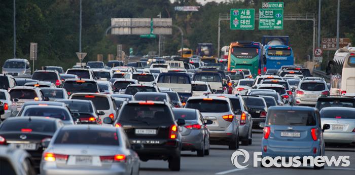 | △ 추석 연휴 마지막 날인 지난 9월 29일 오후 충남 천안시 동남구 풍세톨게이트 천안논산고속도로가 귀경 차량들로 정체되고 있다. <사진제공=포커스뉴스> |