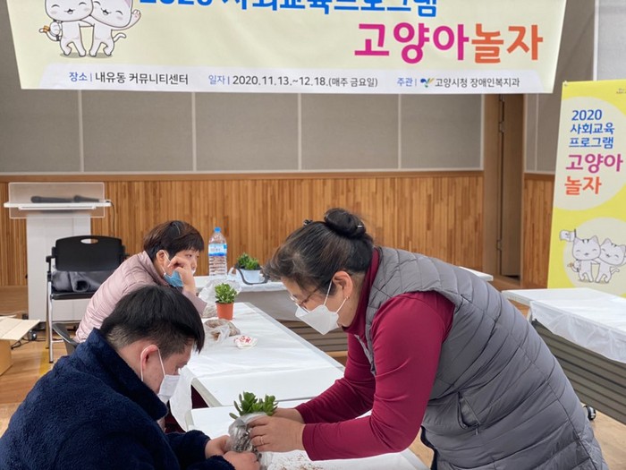‘고양아놀자’는 코로나19로 서비스 단절과 외부활동에 제한을 겪고 있는 장애당사자들의 내·외적 스트레스를 해소하는 프로그램이다. 장애당사자와 보호자가 함께 비대면 온라인 수업에 참여하면 된다.