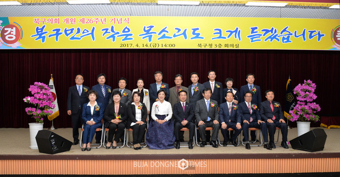 김상훈 구의장은 기념사를 통해 "눈부신 햇살과 꽃향기 가득한 봄날에 개원 26주년 기년행사를 갖게 된 것을 매우 기쁘게 생각한다"고 말하면서, "북구의회 의원 모두 열정적인 의정활동을 통해 의회를 혁신하고, 주민에게 신로받는 의회로 거듭나기 위해 최선을 다하겠다"고 말했다.