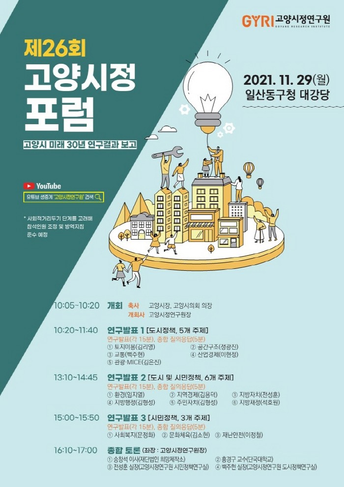 이날 포럼은 고양시정연구원 유튜브를 통해서 실시간으로도 시청이 가능하다.