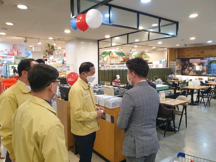 이날 점검에서 이 시장은 코로나로 인한 유통업체와 소상공인들의 경제적 어려움을 청취하고 시민들과 소통하며 대안 방안을 논의했다.