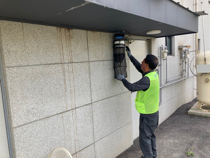 [사진설명] 모기 채집망을 설치하고 있는 모습.
