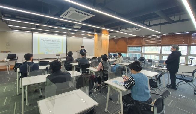 진흥원 입주사의 역량 강화와 전문가와의 네트워킹을 위해 마련된 이번 세미나는 ‘VRㆍAR시장 전망과 기업 대응 전략’이라는 주제로 영국 맨체스터 메트로폴리탄 대학교 정형수 교수가 진행하였다.