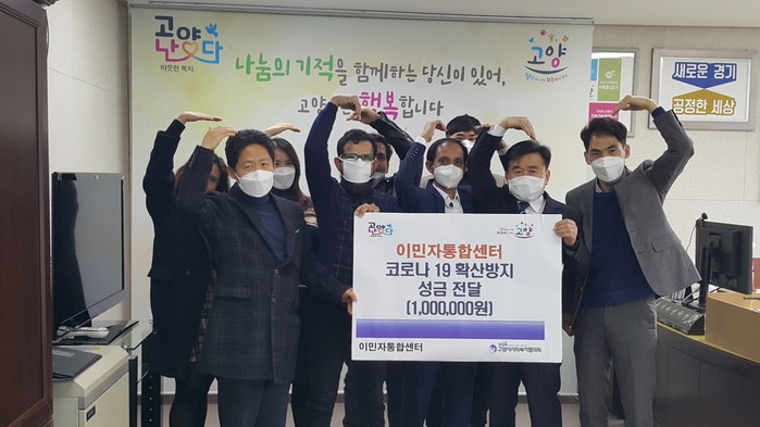 [부자동네타임즈 김인수기자] 고양시(시장 이재준)은 이민자통합센터와 26일 고양시청에서 고양시 취약가구의 코로나 19 감염 예방을 위해“코로나 19 감염 예방을 위한 성금전달식”을 가졌다.