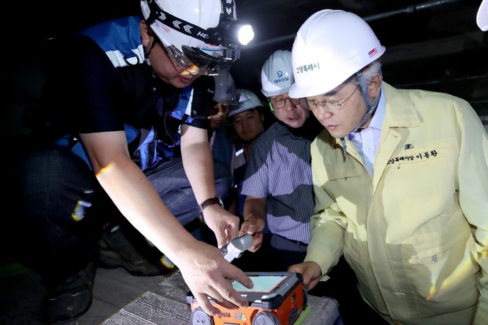 이날 이동환 시장은 안전점검 현장에서 비파괴 검사 장비인 철근탐사기, 슈미트해머 등을 사용한‘기둥과 콘크리트 천장(슬래브) 내의 전단보강근 누락 등 철근 배근의 적정성’, ‘콘크리트 강도’ 등의 시험에 직접 참관했다.