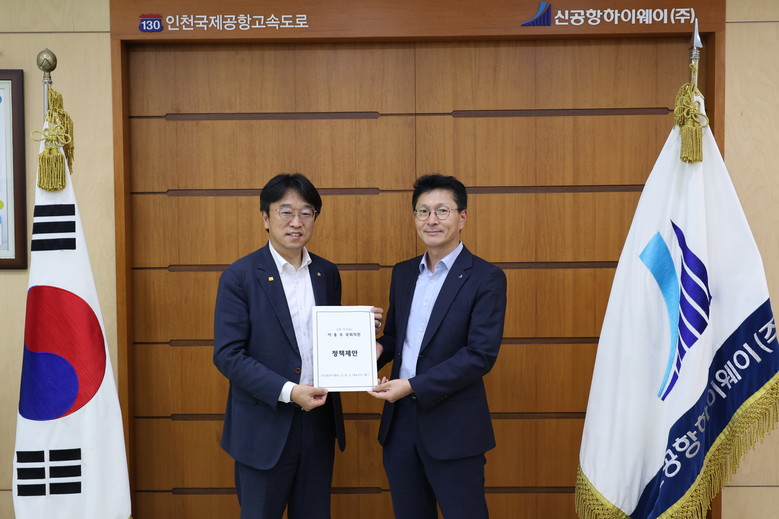 더불어민주당 인천 서구(을) 이용우 국회의원은 오늘 인천공항고속도로를 운영하는 신공항하이웨이(주)를 방문하여 김철오 대표이사에게 정책제안서를 전달했다.