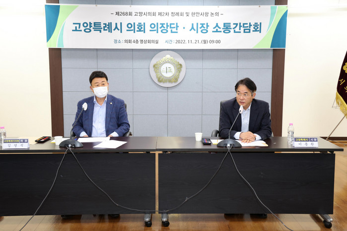 [사진설명] 고양특례시의회 의장단·시장 소통간담회(왼쪽부터 김영식 고양특례시의회 의장, 이동환 고양특례시장)