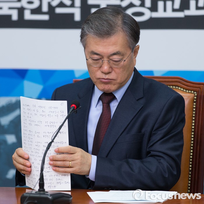 '충분히 흔들리자 상한 영혼이여', '외롭기로 작정하면 어디든 못 가랴', '가기로 목숨 걸면 지는 해가 문제랴' 등의 구절을 적으며 문 대표는 '목숨 걸고 외로워지겠다'는 뜻을 내비쳤다.