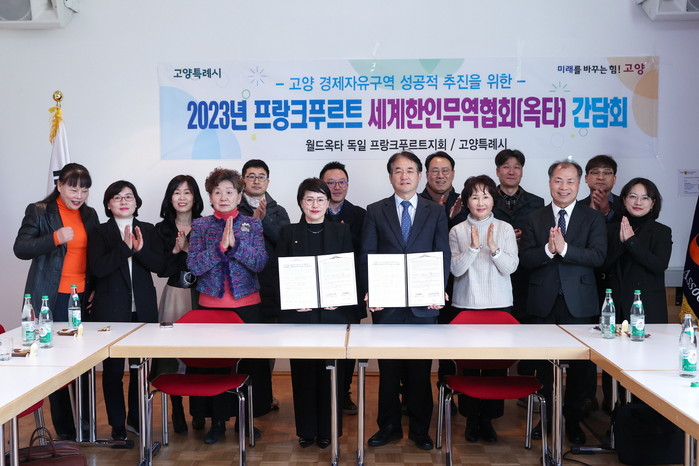 이후 이 시장은 세계한인무역협회(월드옥타) 프랑크푸르트지회(지회장 이은주) 관계자들과 고양경제자유구역의 성공적인 추진을 위한 글로벌 기업 유치 및 국내외 협력 네트워크 구축을 위한 협약을 체결했다. 이번 협약을 통해 고양특례시와 세계한인무역협회 프랑크푸르트지회는 공동 성장을 목표로 적극 협력하고 시너지를 창출하기로 했다.