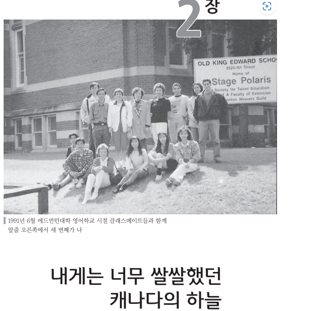 조금 마음이 놓이자 그제야 주변의 풍경이 눈에 들어왔다. 모두가 생소한 모습들이었다. 서울의 빌딩 숲 속에서 생활했던 나에게에드먼턴의 광경은 허허벌판처럼 보였다. 그 속에 ‘나’라는 사람이내팽개쳐진 그런 느낌이었다.