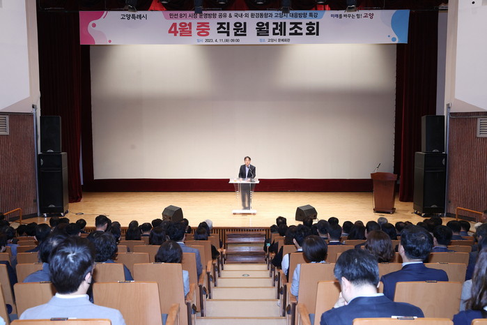 한편, 이날 월례조회에서 정태용 연세대 국제학대학원 교수가 ‘국내외 환경동향과 고양시 대응방향’을 주제로 특강을 진행했다.