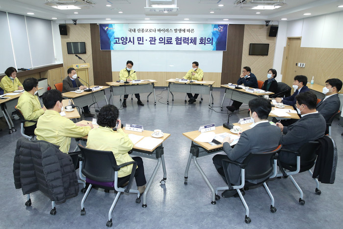 우선 20일 오전 10시부터 고양시청 평화누리실에서 코로나-19 지역사회감염 확산방지를 위한 민관의료협력체 2차 대책회의를 열었다. 회의에는 이재준 고양시장, 이재철 고양1부시장, 의료협회 고양시의사회장, 선별진료소 운영병원장(명지병원장, 국민건강보험공단 일산병원장, 동국대학교 일산불교병원장, 인제대학교 일산백병원장), 일반 격리병상 운영병원장(자인메디병원장, 일산복음병원장), 3개 보건소장 등이 모여 지역사회감염에 대응하기 위한 구체적 방안모색을 위해 고심했다.