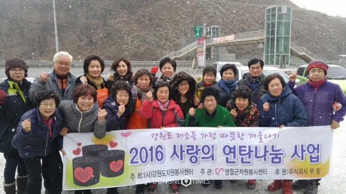 [부자동네타임즈 김민석기자]영월군자원봉사센터(센터장 조광희)는 13일(금) 오전, 한반도면 쌍용리에서 쌍용사랑봉사회(회장 이기로) 회원 15명과 함께 ‘저소득층 따뜻한 겨울나기, 사랑의 연탄 나눔’ 봉사활동을 펼쳤다.
