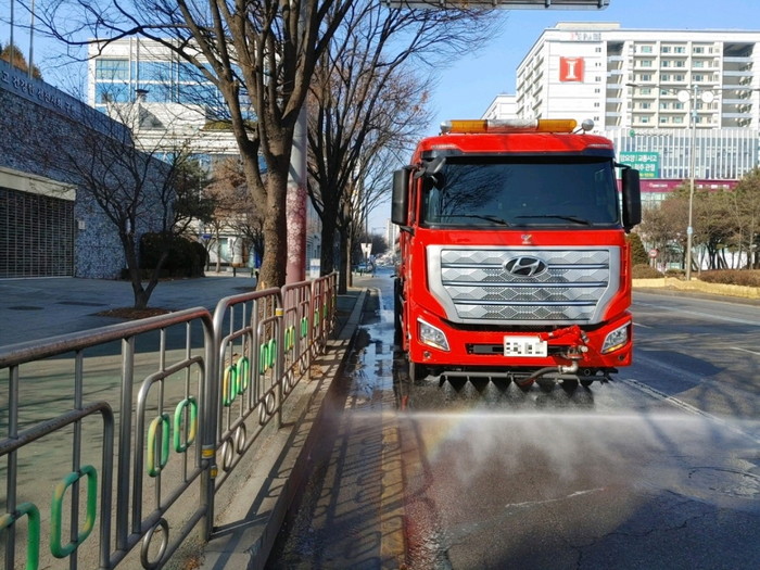 [사진설명] 도로 재비산먼지 저감 살수차량.