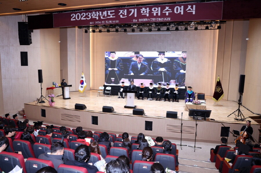 [부자동네타임즈 = 김인수 기자] 지난 15일 중부대학교는 2023년도 전기 학위수여식을 개최, 대학원생을 포함해 800여 명의 졸업생들이 학위를 받았다. 이동환 고양특례시장은 이날 축사를 맡아 졸업생들의 새 출발을 응원했다.