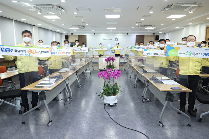 박원석 제1부시장은 “공정한 사회를 지탱하는 근간이 공직자의 청렴이며 갈수록 더 높은 도덕성과 청렴성이 요구”된다며 “2022년에는 고양특례시에 걸맞은 청렴한 공직문화를 만들고 시민들에게 신뢰를 얻는 공직사회가 되도록 다 같이 노력해주시기 바란다”고 당부했다.