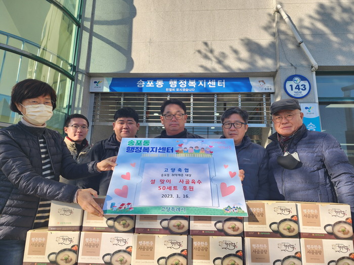 [부자동네타임즈 김인수기자] 고양특례시 일산서구 송포동(동장 정윤채)과 지역사회보장협의체(위원장 김중기)는 지난 16일 고양축협(대표 유완식)에서 관내 취약계층들의 겨울 영양관리를 위한 사랑 나눔 ‘사골육수키트’50세트를 전달받았다.