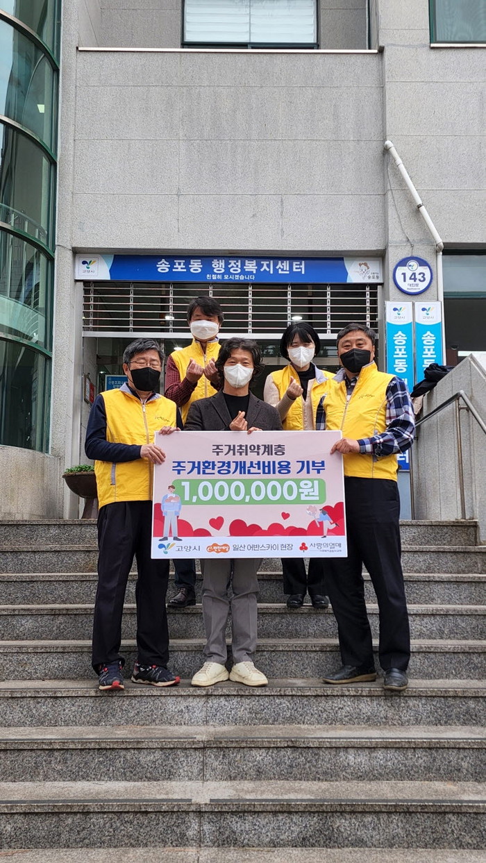 [부자동네타임즈 김인수기자] 고양시 일산서구 송포동행정복지센터(동장 정윤채)에서는 지난 4월 13일 주거환경개선비용 기부활동으로 훈훈한 온정의 손길이 이어졌다.