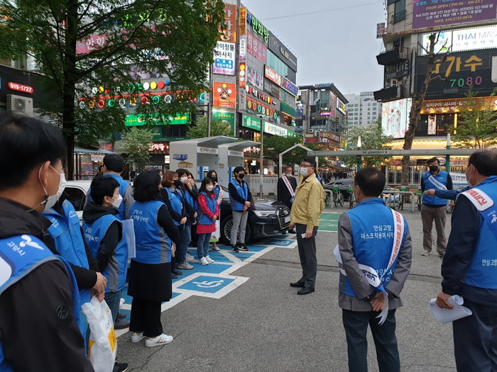 팀장급 이상 공무원 50여 명으로 점검반을 구성하여 유동인구가 많아 혼잡한 저녁시간대 방역수칙이 잘 지켜지는지 특별 점검하고, 공용물품 방역소독, 안심콜 출입관리시스템 이용 철저 등의 내용이 담긴 시민호소문과 안내문을 전달했다.
