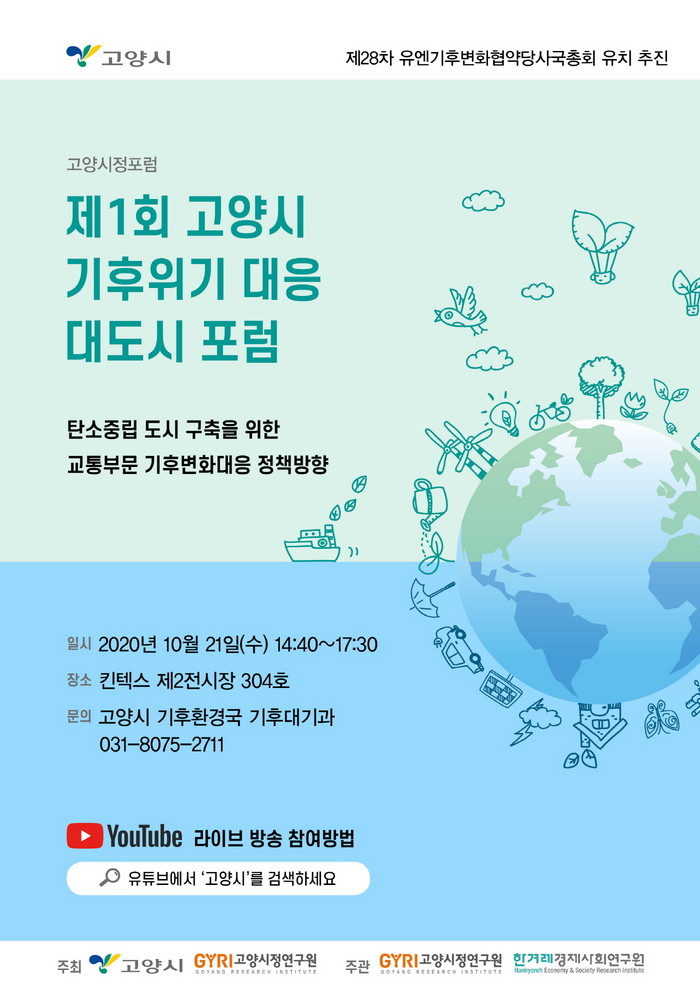 제1회 포럼 주제는 ‘대도시에서의 교통부문 탄소저감 정책방향’으로 탄소 배출량이 많은 대도시에서의 기후위기에 대응하는 고양시만의 정책 방향을 선제적으로 제시할 예정이다.