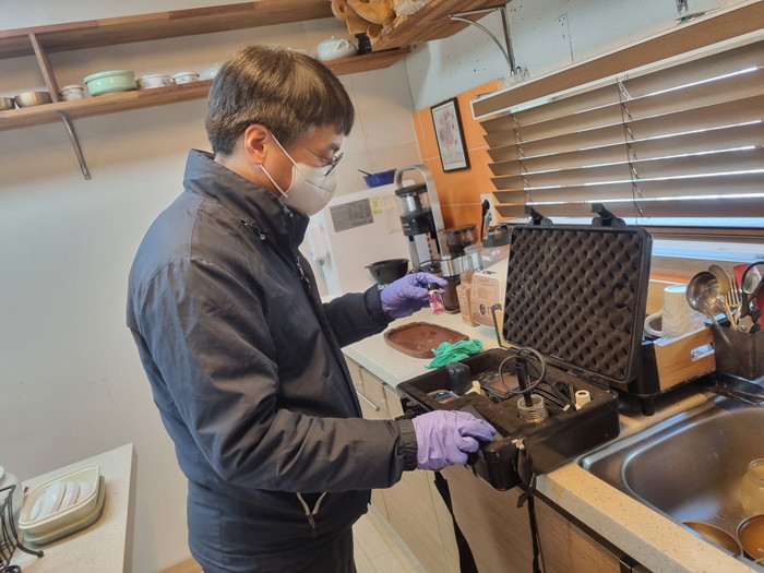 [사진설명] 고양시 공무원이 가정을 방문해 수돗물 수질 검사를 실시하고 있다.