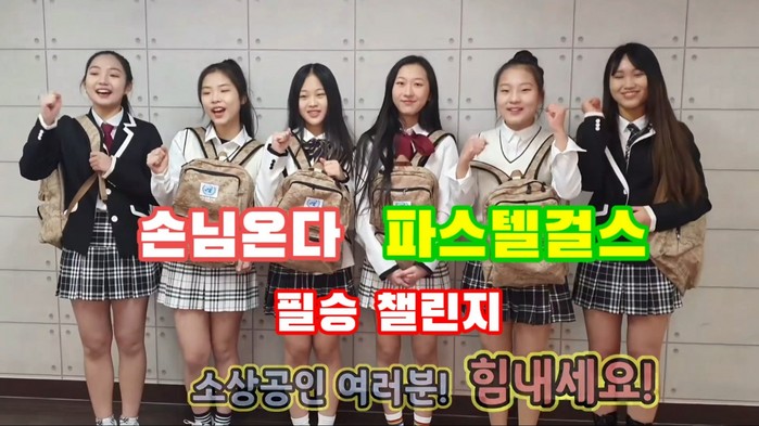[부자동네타임즈 김인수기자] 최근 '손님 온다'로 화제가 되고 있는 파스텔 걸스가 소상공인들에게 힘을 북돋아 주기 위해 ‘필승 챌린지’를 하며 응원에 나섰다.